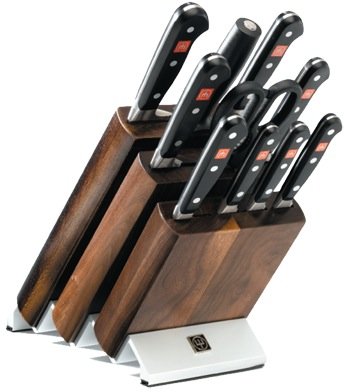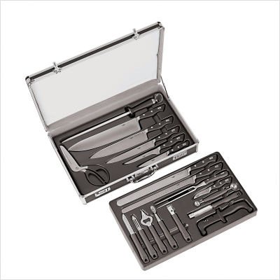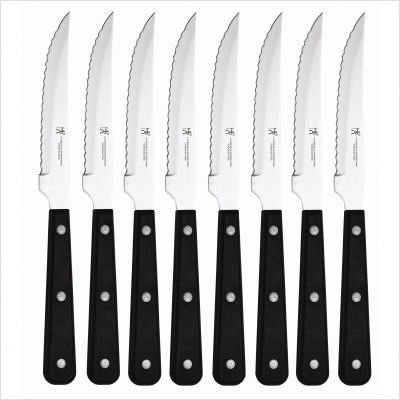 This set includes the following items: Four 4-1/2" Steak Knives Aluminum Presentation BoxProduct Features: Ergonomic, high impact polypropylene handle Triple riveted, full tang handle Functional, solid, reliable design Precision forged blade Made in Germany Hand wash